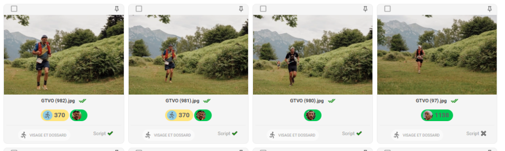 - Un couple visage + dossard — le cas idéal : le visage et le numéro de dossard ont été détectés sur la même photo et mis en correspondance