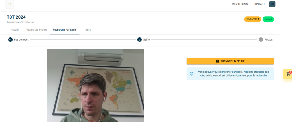 La recherche par selfie permet de retrouver ses photos uniquement à partir de son visage, sans connaître son numéro de dossard.