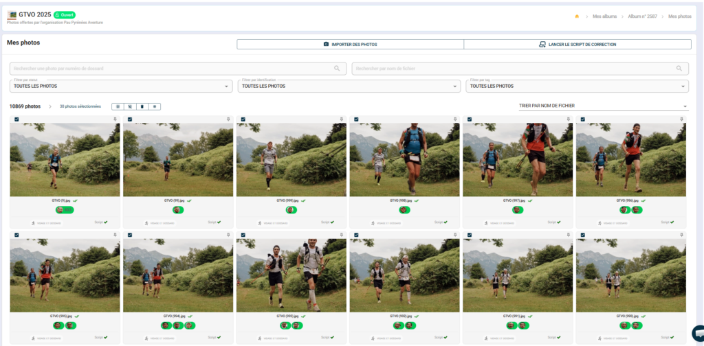 - From "My photos", use filters if necessary to isolate the photos you want to delete (by tag, status, bib number, etc.).